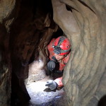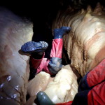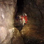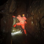 This time The Step was passed to continue on to leave the Main Streamway at the passage that leads to Pluto’s Bath, a deep pool that can be traversed across but is probably easier to just accept that you are going to get wet. Zeb made a brilliant show of how not to traverse over it and created a good splash as he hit the water. Luckily, I had the camera on video at the time. It was at this point that I discovered that buying cheap isn’t always the best policy as the fleece undersuit I’d bought to replace the one I shrunk turned out to not be very free-draining and I doubled in weight.
