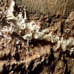 Carrying on to the start of the East Leg, a passage can be followed to a climb up into Crystal Pool Chamber and The Annex. My back was complaining a bit by this time so I elected to stay behind and photograph the many helictites that were here whilst the others went on to explore. When they returned, we had a further look around with Zeb squeezing into a small passage with an incredible floor mad of crystals and then started to return. On the way back, Zeb and Vicky decided to go via the Wet Way whilst the two sensible members of the party took the easier Dry Way. Back to the top end of the fixed wire and soon we were back in The Main Streamway. Hopefully when my back and neck improve, I shall make a return with a view to exploring some more of the series.