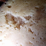 A look up the start of the Escape Route and then coming back down the Toastrack, Tris and Adam decided to go through Pluto’s Bath and down to the streamway again. I was feeling the cold by now and didn’t fancy a dunking so elected to stay put. I soon heard calls that I really should come on down and see something. I was able to avoid the water by traversing across Pluto’s Bath and headed down the passage. The lower end of the passage was covered, walls and ceiling in foam and was a stark testament to just how high the Streamway can rise in flood. It must have risen to somewhere around six to eight feet above the current level. At this point is was possible to sit right by the water’s edge without getting swept away and this we did for a while before heading back out stopping briefly for Tris to perform his ‘ablutions.’