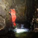 At Column Passage we pushed dave up the climb to rig a handline before we all followed him up. The column is a very impressive formation that I always like to see and Gareth and Freya were suitable awed. Dave and Gareth nipped through the duck to visit the Eagle’s Nest whilst we more sensible three stayed dry and took a couple of photos.